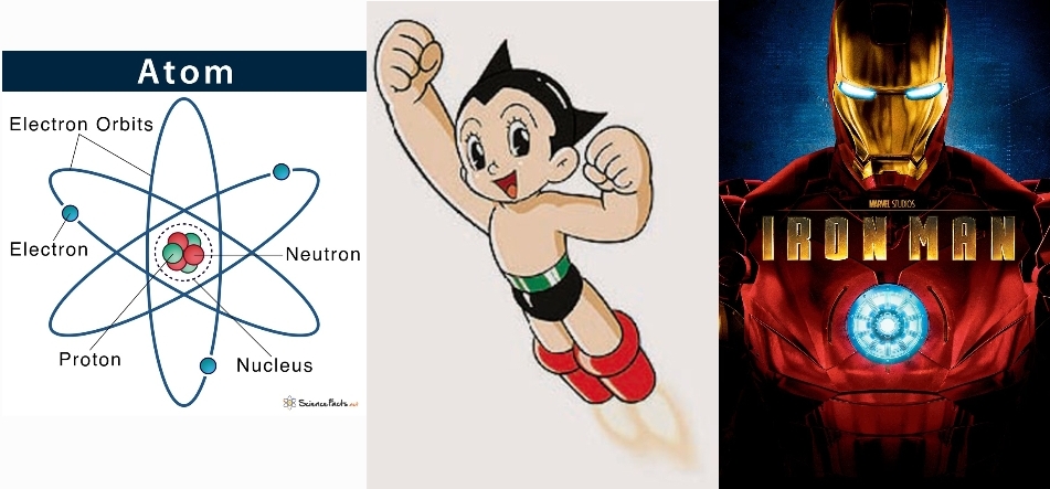 그럼 核과 原子란 무엇인가? 물리학, 화학에서 말하는 核은 原子의 核心을 말한다. 아톰(Atom)이 원자의 영어 名이다. 아톰은 그리스 語原으로 '더 쪼갤 수 없는 것(átomos, undivided)'이다. 그래서 아톰(原孑)이 모든 물질의 기본이 된다. 핵심(核心)에는 원자핵이 양성자와 중성자로 구성되어 있고, 주위를 전자가 돌고 있는 구조이다. 그래서 원자가 내는 힘이나 핵이 내는 힘이나 같은 것이다. 이렇게 핵의 반응이 핵분열과 핵융합으로 된다. 여기서 電子는 전기적으로 양성자와 반대의 힘이 된다. 전자를 잃거나 얻으면, 중성인 원자가 電荷를 띄는 이온이 된다. 특히 반도체는 이러한 전자의 특성을 이용하여 전하를 흐르게 하거나 막히게 한다.