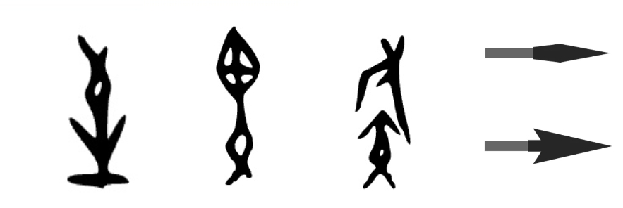 오늘은 살에 대하여 알아보면, 살은 보통 화살시(矢)를 말하며 갑골문자는 살의 앞부분이 ♦️ 형태이다. (金文에 화살전(箭)이 나타난다. 이는 대나무(竹)에 前의 音을 사용하였다.) 그런데 射나 至에 있는 살은 ⬅️ 형태이다. 즉, 미늘(barb) 형태의 arrow이다. 그러고 보면, 쇠를 발견하기 전까지는 돌이나 청동제품은 모두 ♦️ 형태이다. 부러지기 쉽고 무른 재질을 ⬅️ 이런 모양으로 한다는 것이 무리이다. 그러면 射나 至에 나오는 살은 철 제품이 확실하다. 이처럼 갑골문자라도 초기의 청동기시대와 후기의 철기시대로 나눌 수 있다.