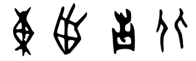 먼저 사냥을 하던 만주지역이 동쪽(東)이다. 이 갑골자 모양을 보면, 해가 나무에 걸린 것처럼 동그랗지가 않다. '동이 터다.'처럼 처음엔 그런 뜻으로 이해를 했는데, 해가 아니다. 하긴 해 뜨는 곳을 표현하려면, 바다나 산 위로 해 뜨는 모습을 형상화하면 되지 하필 나무사이로 해를 표현할까? 한자 어원을 설명하는 곳도 해가 아니라고 한다. 그럼 뭘까? 모두 캔디 모양으로 묶은 것이라고 설명하나 그 이유는 설명하지 않는다. 하지만 이것은 사냥에 대한 글자이다. 즉, 이 모양은 가운데를 볼록하게 하고 양쪽을 동여 맨, 덫을 표현한 것이다. 우리말 '동이다'를 표현하고 '동'으로 읽는다. OC도 같이 /*toːŋ/으로 재구 되어있다. 동물을 직접 창이나 활로 잡을 수 없을 때, 잡기 위한 방법으로 아직도 사용하는 방법이다. 영어로는 east이다. 원시게르만어(PG, Proto-Germanic)*aust- "east," 문자 그대로 "toward the sunrise" 해 뜨는 곳이다.